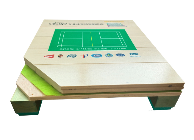 雙層板上下龍骨雙彈結構高吸震性和連續(xù)回彈性的固定懸浮式的運動木地板系統,適用于國內,國際比賽。